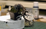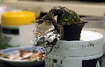 小作品はともかく大掛かりな盆栽の場合、まず鉢を作りそこに幹を生やしながら造形を進めていきます。理由は?・・・ |
