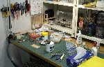 | ■ 続・あるものは何でも使う・・・ この光景は私としてはかなりおとなしい方で、ひどい時には壁際に前後2面ある作業テーブル(合計10メートル)がすべて埋まる事も・・・ |